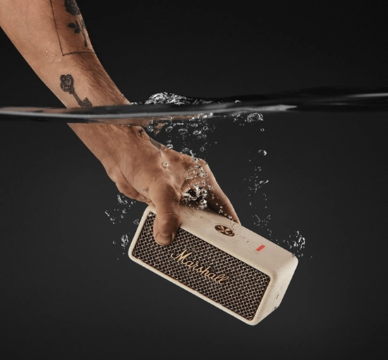Με πιστοποίηση IP67, μπορείτε να καταδυθείτε το Emberton III σε 1 μέτρο νερού για έως και 30 λεπτά. Το ταξιδιωτικό πνεύμα του Marshall φαίνεται σε αυτό το στιβαρό σχέδιο ηχείων.
