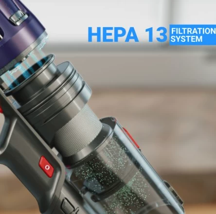 The rechargeable 29.6V lithium-ion battery with a capacity of 2200mAh offers exceptional performance and ensures up to 60 minutes of intensive cleaning with the use of a motorized nozzle. The battery is removable and can be charged independently from the device for greater convenience.