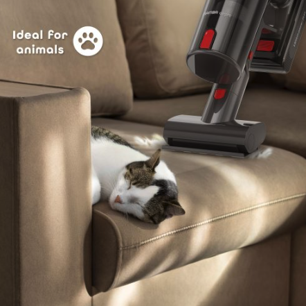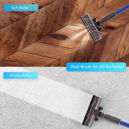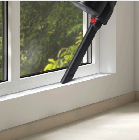 The brush head features integrated LED lighting to spot dust and debris even in the darkest places, making cleaning easier, especially under furniture.
