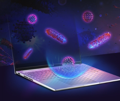 Το ASUS Antimicrobial Guard Plus εφαρμόζεται σε περιοχές του laptop που ο χρήστης αγγίζει συχνότερα. Αυτή η τεχνολογία χρησιμοποιεί μια πιο συμπυκνωμένη επικάλυψη* που μειώνει ιούς και βακτήρια. Είναι επιστημονικά αποδεδειγμένο (σύμφωνα με τα πρότυπα ISO 21702 και 22196) ότι μπορεί να μειώσει την ανάπτυξη ιών και βακτηρίων σε ποσοστό άνω του 99% μέσα σε 24 ώρες. Η δοκιμή περιλάμβανε H3N2 (γρίπη Α) και το βακτήριο E. coli.