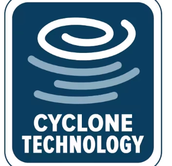 Thanks to cyclonic technology, dust is immediately removed from the air, offering top performance and exceptional cleanliness. The rotation of air with dust is an efficient way to remove dust from the air, as it separates heavy dust particles, which are trapped and can be collected. Since there is no bag clogged by dust and dirt, a steady airflow and high absorbency are achieved.