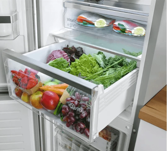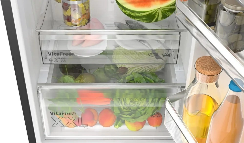 Το άνετο σύστημα αποθήκευσης και φρεσκάδας VitaFresh XXL <0°C> δημιουργεί το τέλειο περιβάλλον για τη διατήρηση των φρέσκων προϊόντων. Κρατά χαμηλότερες θερμοκρασίες για τα ψάρια και το κρέας και διατηρεί τα φρούτα και τα λαχανικά σας πραγματικά φρέσκα.