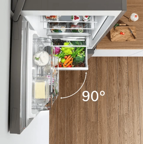 Τοποθετήστε το ψυγείο στο σημείο που σας βολεύει. Τα συνηθισμένα μοντέλα ψυγείων της αγοράς απαιτούν περίπου 10 εκατοστά απόσταση από τον τοίχο ή από τα γύρω έπιπλα, για λειτουργικούς και πρακτικούς λόγους. Ακόμα και για να ανοιχτούν η πόρτα και τα συρτάρια τους. Χάρη στην πρωτοποριακή τεχνολογία Perfect Fit, οι ελεύθεροι ψυγειοκαταψύκτες Bosch μπορούν να τοποθετηθούν ακριβώς δίπλα σε τοίχους και έπιπλα χωρίς να αφήνουν ούτε χιλιοστό χώρου αναξιοποίητο.
