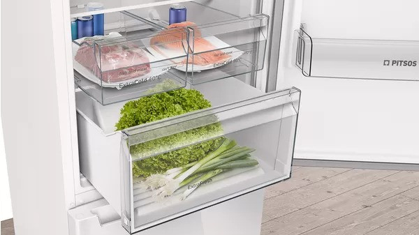 ExtraFresh συρτάρι ειδικά σχεδιασμένο συρτάρι για να διατηρεί τις βιταμίνες και τη γεύση των φρούτων και των λαχανικών, μέχρι και για διπλάσιο χρονικό διάστημα. Διαθέτει σταθερό τηλεσκοπικό μηχανισμό και ειδική ρύθμιση για μεγάλες, αλλά και μικρές ποσότητες τροφίμων.