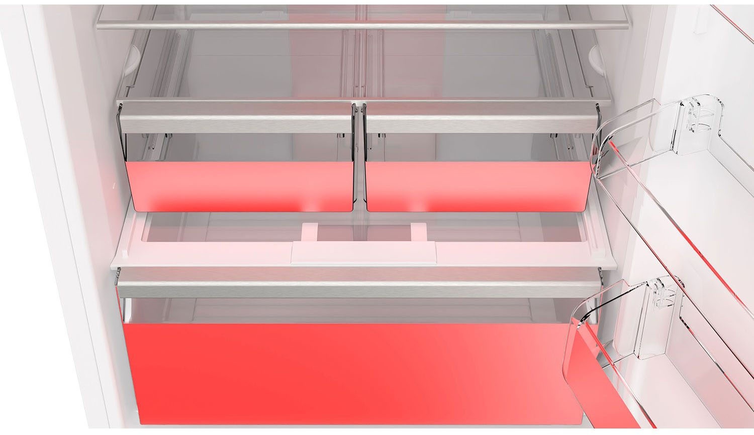 Ρυθμιζόμενος ομοιόμορφος φωτισμός μέσα στο ψυγείο, τόσο από το πάνω μέρος όσο και από τις πλευρές, με μεγαλύτερη διάρκεια ζωής από τα συμβατικά φώτα ψυγείου.