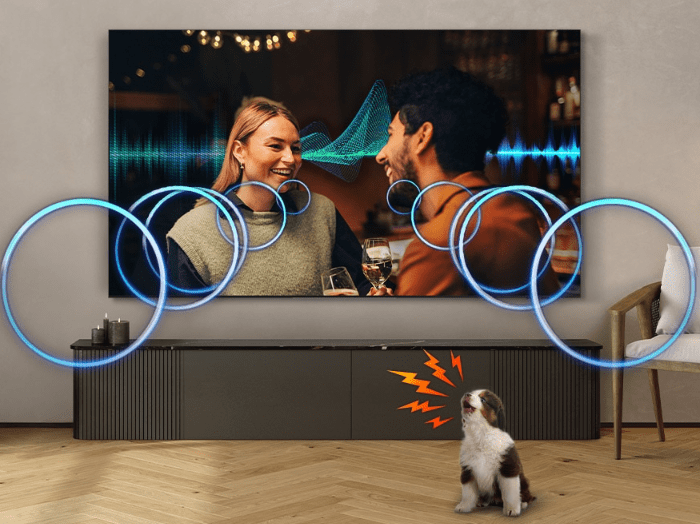 Utilize the television as an assistant for your pets when you're not at home. The TV detects sounds such as barking through its microphone and automatically displays your pet's favorite content to soothe it.