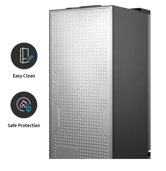 Καθαρίστε το πίσω μέρος του ψυγείου σας με μεγάλη ευκολία. Το Clean back είναι ένα λείο κάλυμμα ασφαλείας για τα απαραίτητα πηνία και καλώδια. Φαίνεται πολύ οργανωμένο, καθαρίζεται εύκολα. Δεν επιτρέπει στους ρύπους να συγκεντρωθούν γύρω από τα στοιχεία και τα προστατεύει από ζημιές.