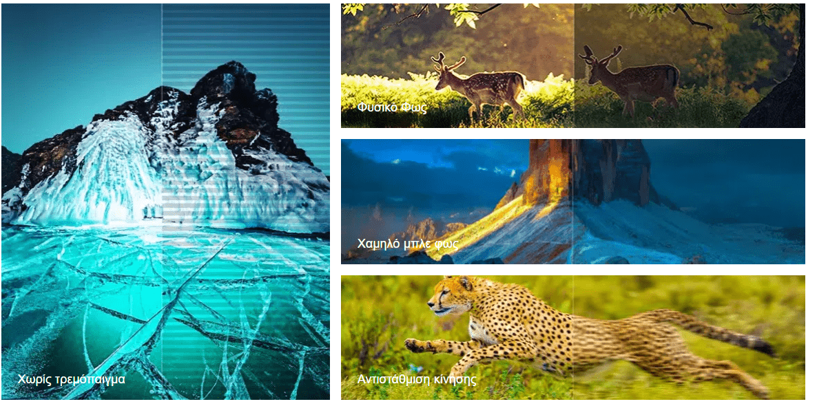 Η τεχνολογία Ai Motion ανιχνεύει με ακρίβεια τα αντικείμενα που μετακινούνται γρήγορα και υπολογίζει την κίνηση βασιζόμενη στο ρυθμό ανανέωσης και τον αριθμό καρέ, απλώς για να αποδώσει την ομαλή εικόνα αντισταθμίζοντας το θάμπωμα και το σκίσιμο.