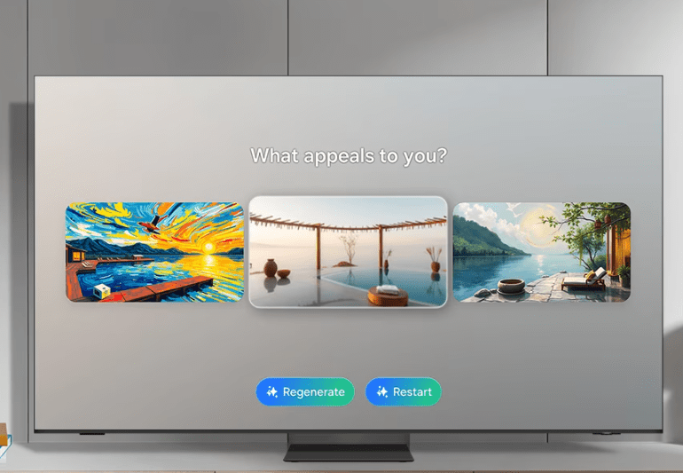 Διαλέξτε λέξεις-κλειδιά για το συναίσθημα που επιθυμείτε και αφήστε το ΑΙ να αναλάβει. Η τηλεόραση δημιουργεί εκπληκτικές, όμορφες εικόνες που μεταμορφώνουν την ατμόσφαιρα του χώρου σας.