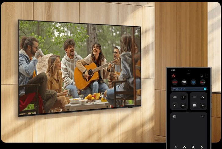 Μέσω της συμβατής κινητής συσκευής σας, μπορείτε να έχετε πρόσβαση σε κύριες λειτουργίες της Samsung Tizen TV, όπως πολυμέσα, λειτουργίες, λειτουργία περιβάλλοντος και μενού. Το Quick Remote μπορεί επίσης να χρησιμοποιηθεί ως τηλεχειριστήριο, δίνοντάς σας τη δυνατότητα να αλλάζετε κανάλια, να ρυθμίζετε την ένταση του ήχου και πολλά άλλα, από το συμβατό κινητό σας.