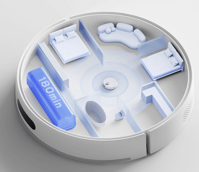 When fully charged and used in normal mode, it can vacuum and mop for up to 180 minutes. This makes it ideal for cleaning large areas without depleting the battery.